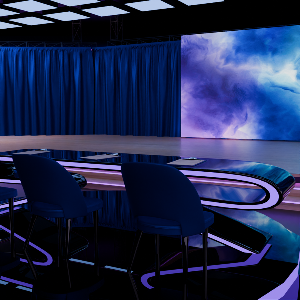 Dance your heart out with your team or go solo on stage! Includes stage background, judge's table, bleacher area and audience seats. Blender only!